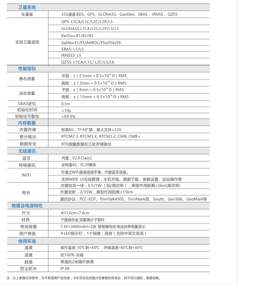 支持多達555通道多星系統:中國北斗BDS,歐盟伽利略Galileo,美國GPS,俄羅斯GLONASS,印度IRNSS,日本Qzss,以及SBAS衛星增強系統,并支持各衛星系統的多個(gè)民用波段。讓您在多種復雜地形條件,密集遮擋和較惡劣的電磁干擾環(huán)境下,仍能堅持工作,提供精度可靠的定位解算。